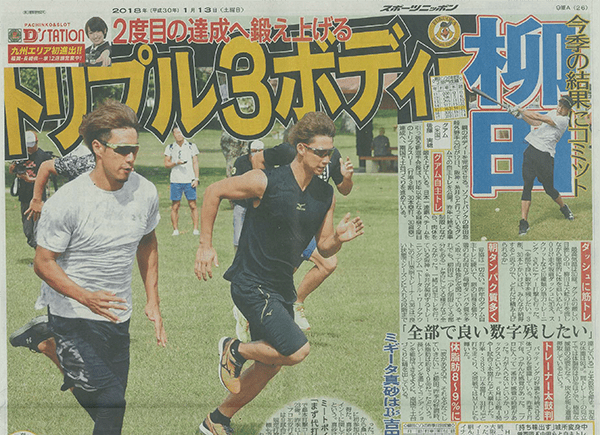 ソフトバンクホークス柳田悠岐選手・松田宣浩選手、阪神タイガース糸井嘉男選手などのグアムキャンプに下山英明トレーナー、矢島優樹トレーナーが帯同し、自主トレを行った様子が紹介されました。