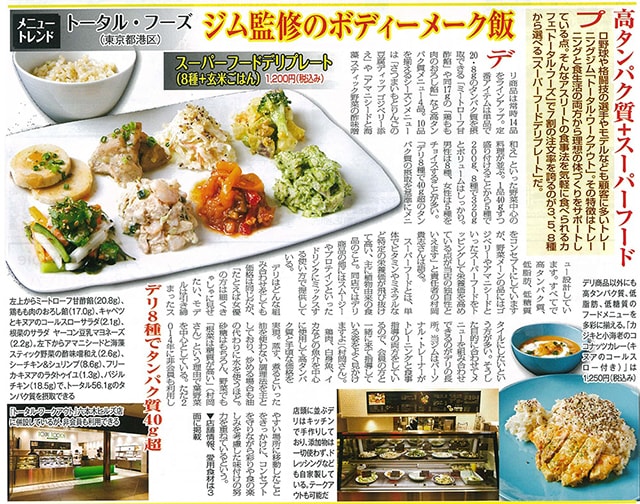 「時代がアツく求める、高プロテイン 低カロリー料理 ジム監修のボディーメーク飯」として、TOTAL FOODSの「スーパーフードデリプレート」と「カジキと小海老のココナッツカレー」をご紹介いただきました。