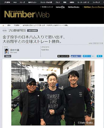 「金子投手の日本ハム入りで思い出す、大谷翔平との全球ストレート勝負。」と題して、北海道日本ハムファイターズへ移籍した金子弌大選手の、来季にかける思いとトータル・ワークアウトでの代表ケビン山崎とのトレーニングについて紹介されました。