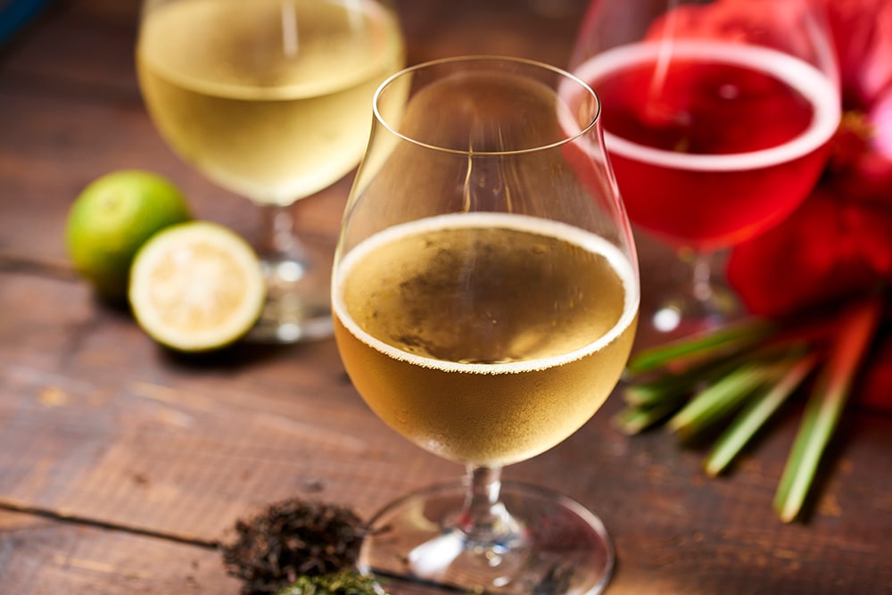 コンブチャとは、お茶を発酵させてつくる植物性の乳酸発酵スパークリングドリンクです。(昆布茶とは全く別物です!)