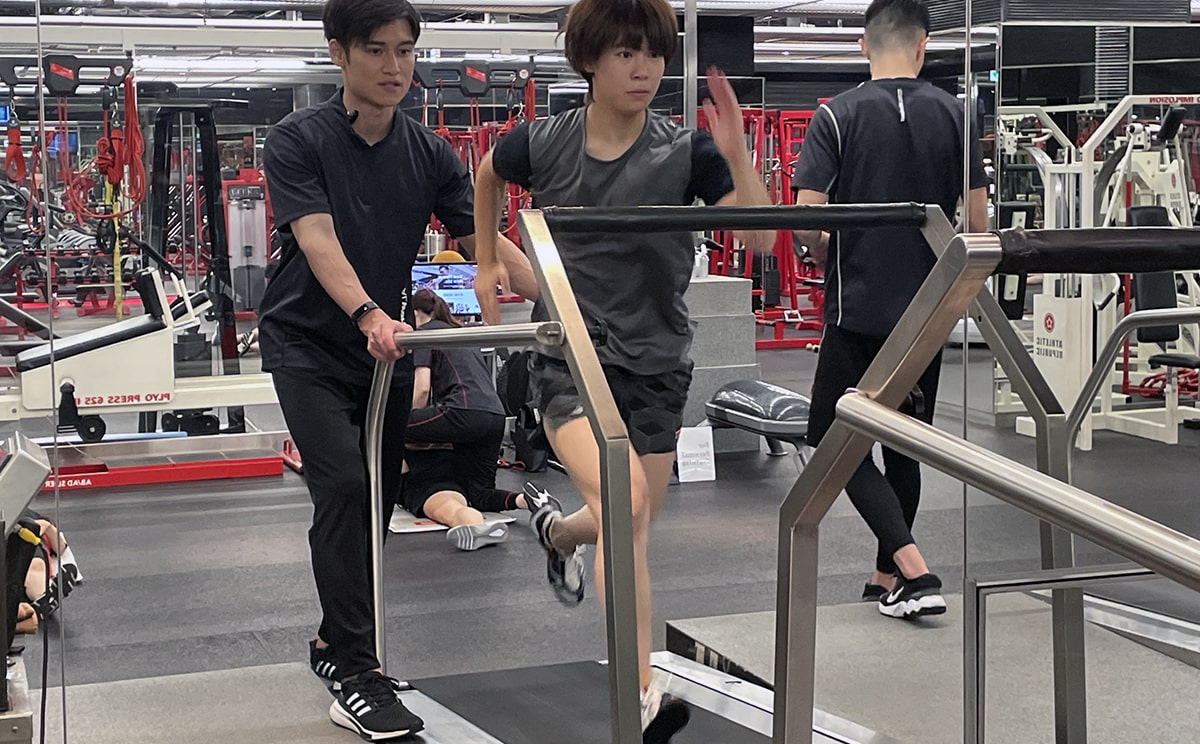 具体的には、スーパー・トレッドミルを使用したダッシュを主軸にジャンプを組み合わせ、着地の際ひざではなく股関節で受け止め、受け止めた力を次の出力に使うという力の連動を通じて、瞬発力と爆発的なパワーを発揮できるカラダづくりに取り組みました。