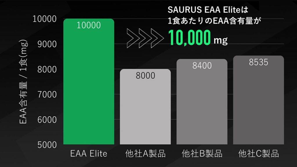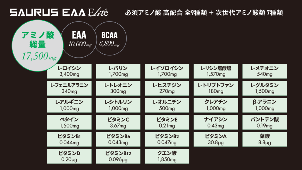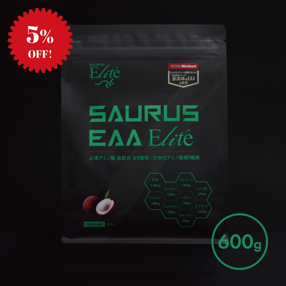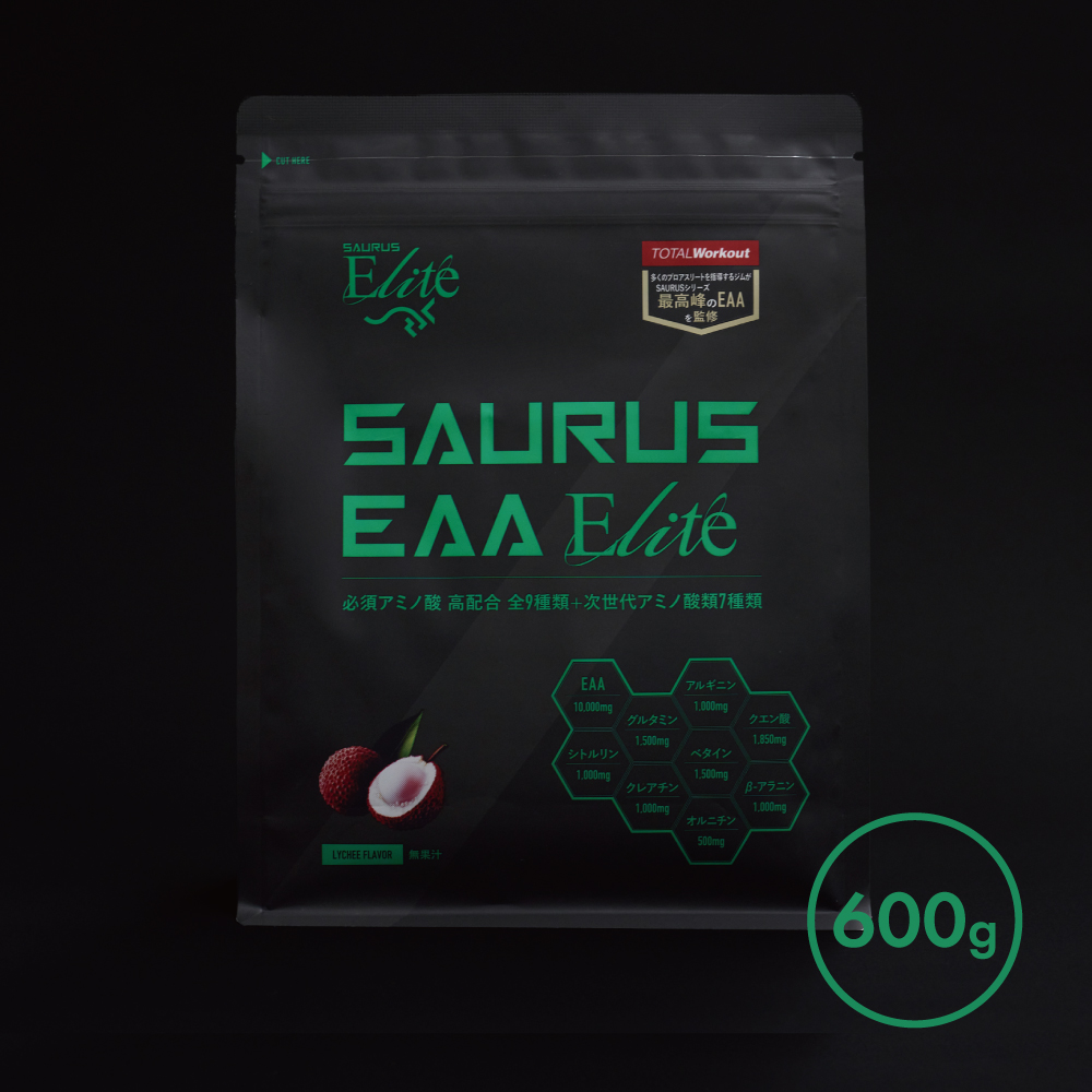 徹底的にこだわり抜いた成分の含有量と配合。プロフェッショナル向けに最短で最大の効果を追求したEAA「SAURUS EAA Elite」が誕生しました。2025年4月14日よりトータル・ワークアウト店舗や公式サイト等にて販売開始いたします。