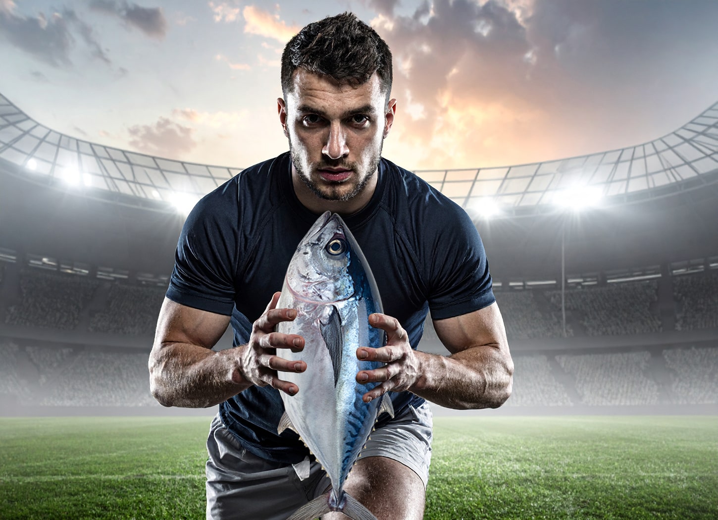Firefly_ラグビーの試合、選手がラグビーボールを手にトライしている、選手を正面からとらえた図_1450-min