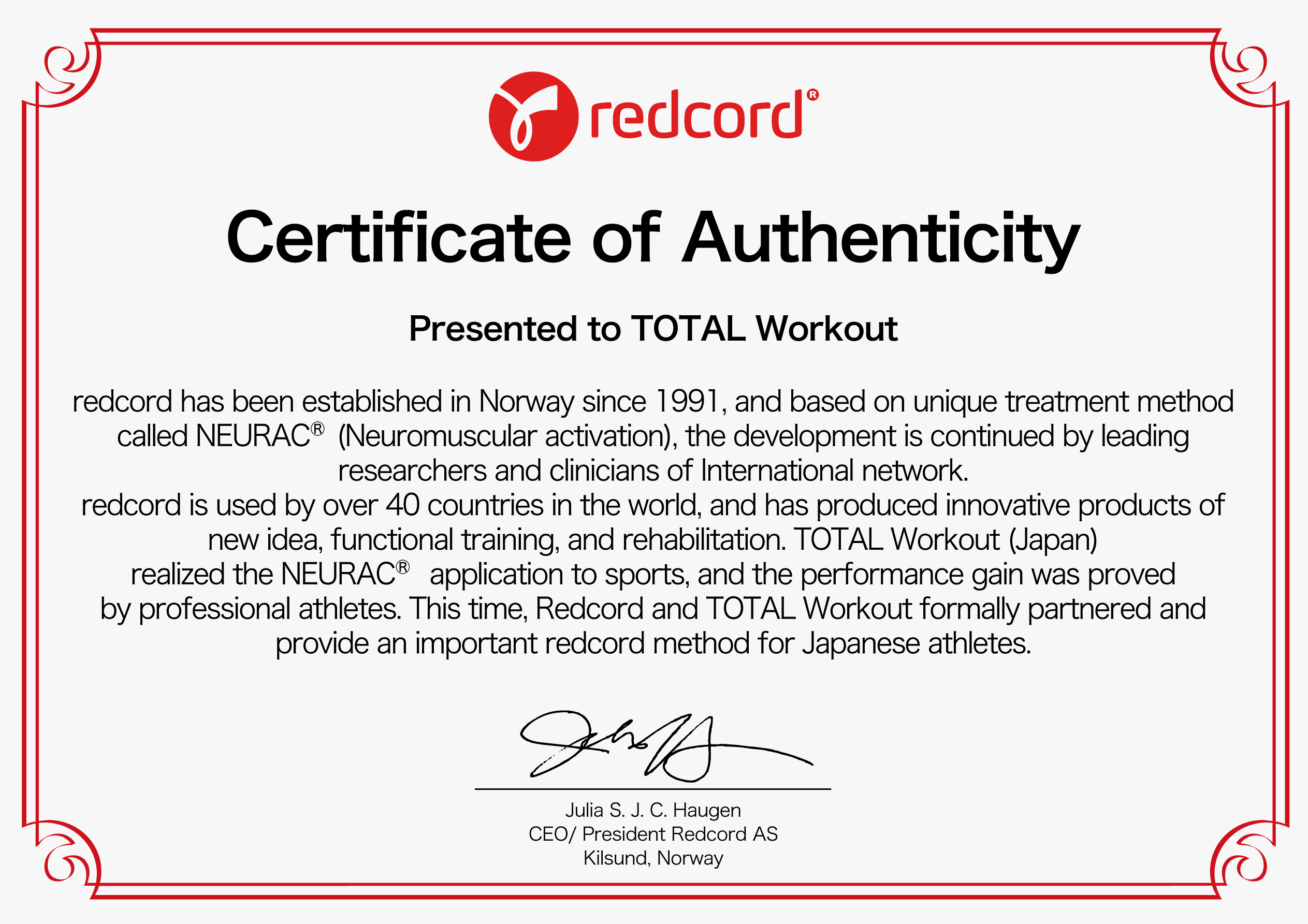 TOTAL Workoutでは、その方法をRedcordというリハビリの器具を用いて、スポーツという分野に初めて導入する事に成功しました。