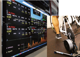 自転車を使用するトレーニングでは、Bike Trainerという酸素摂取量を基にした個人データを測定し、その人にあったトレーニングメニューが表示されたり、同時にその場に居合わせないメンバーとのレースも可能になるシステムを導入しています。