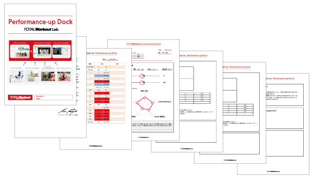 『TOTAL Workout Lab. System』で行う全ての種目を一覧にし、記録として残していきます。TOTAL Workoutに過去通われた数多くのトップアスリートの成功データと、自身の目標、現状数値を比較する事が出来るというのも、魅力の一つです。ご自身のデバイスに記録を残しておくと言う事は、競技におけるパフォーマンスの好不調と、過去の測定値の比較で、今やるべき事が明確になります。これまでのトレーニングを通しての取り組みがひとまとまりになったOnline Systemは、アスリートにとって、自信が持てる大切な存在になると思います。