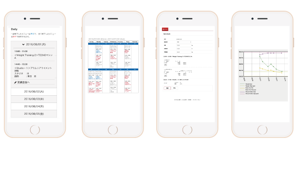 パーソナル・トレーナーは目的に沿ったトレーニングメニューを立て、実行する中で、課題としている能力がどのくらい向上し、更なる目標はどんなところなのか?を考える指標の一つとして、このシステムを使用します。トレーニング中に行ったことを数値化し、モバイルを通じていつどこにいても、ご自身が次にやるべきトレーニングをお伝えする事が可能です。そのためゴール設定がしやすく、トレーニングスケジュールの管理も容易になります。