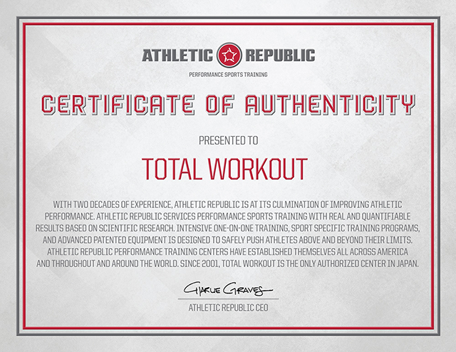 TOTAL Workoutは2001年よりAthletic RepublicとPartnershipを結び、トレーニング技術の開発を行っています。