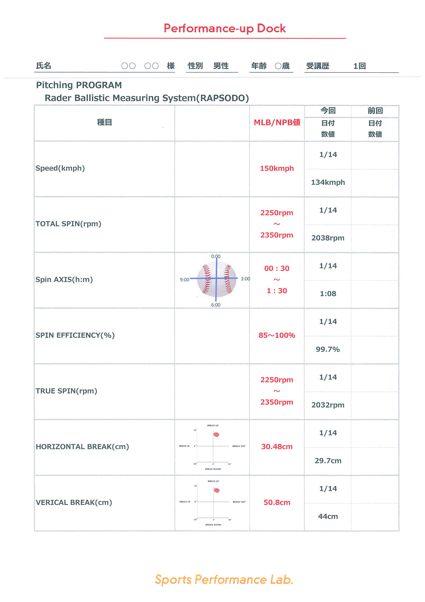 RAPSODOを使用し、球速・回転数・回転軸・変化量を測定