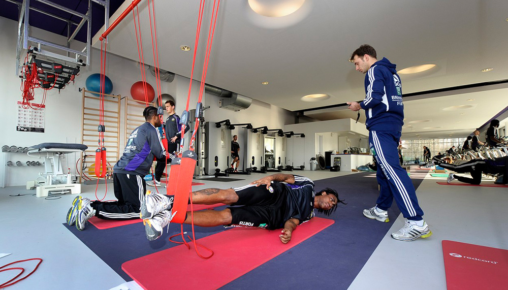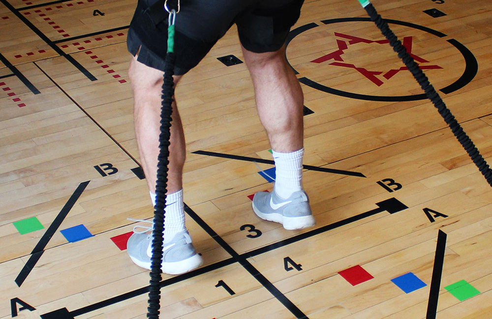 下半身から上半身への力の連動を意識し、2つ以上の筋肉を連動させて100%使うことを学びます。意識が通りづらく、思うように動かせない筋肉はレッドコードを使用し、神経促通を行ってサポートします。