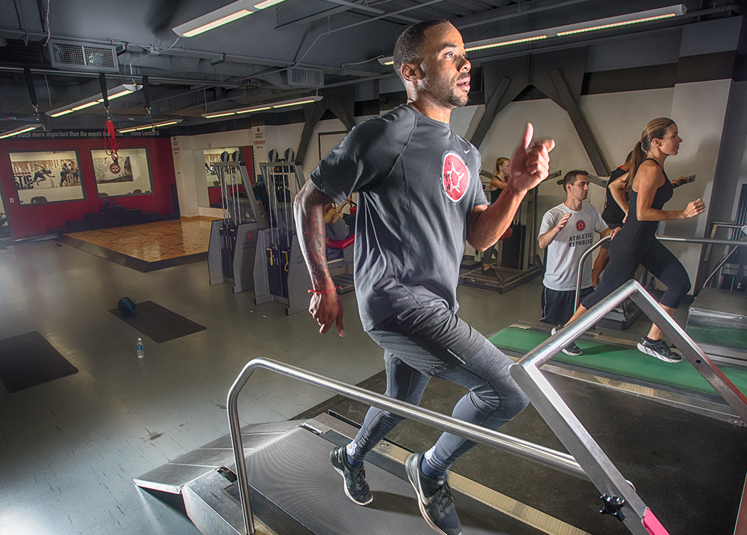 トップスピード28mile/h(44.8㎞/h)、最大傾斜40度のランニングマシン。インターバル時間とスピード、傾斜を調整することで、スピードアップに欠かせない2つの要素であるストライドの拡張とピッチの増加を達成します。競技別に求められる動きを細密に計算し、神経系を意識しなくても正確に動く状態を目指します。